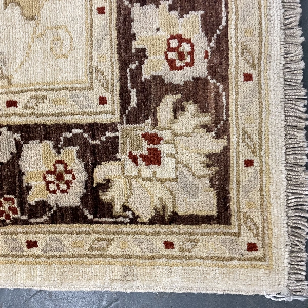 Bring warmth and sophistication to your space with this Wool Hallway Rug, a perfect fusion of modern elegance and traditional craftsmanship. Hand-knotted from premium wool with a cotton foundation, this luxurious area rug features an all-over floral design in soft cream, brown, ivory, and beige tones. Ideal for hallways, living rooms, or cozy corners, it complements both classic and contemporary interiors with its timeless appeal.