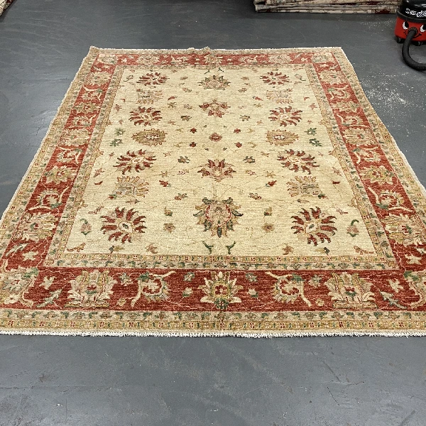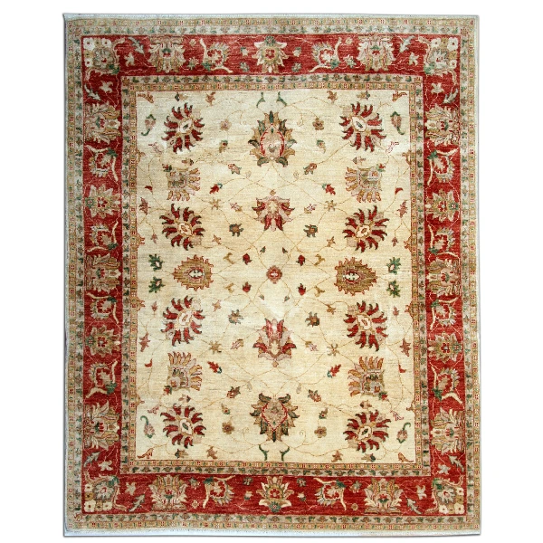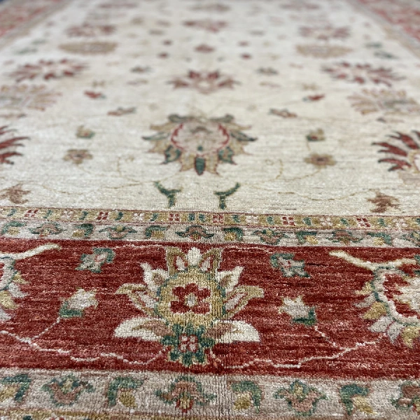 The Cream Ziegler Floral Oriental Rug is a luxurious hand-knotted wool masterpiece, blending traditional Oriental motifs with a modern aesthetic. Featuring an elegant all-over floral pattern, this rug showcases a soft cream, beige, ivory, and red palette, creating a timeless yet contemporary appeal. Crafted from premium wool and cotton, it is designed to add warmth, sophistication, and a refined charm to living rooms, bedrooms, or formal sitting areas.
