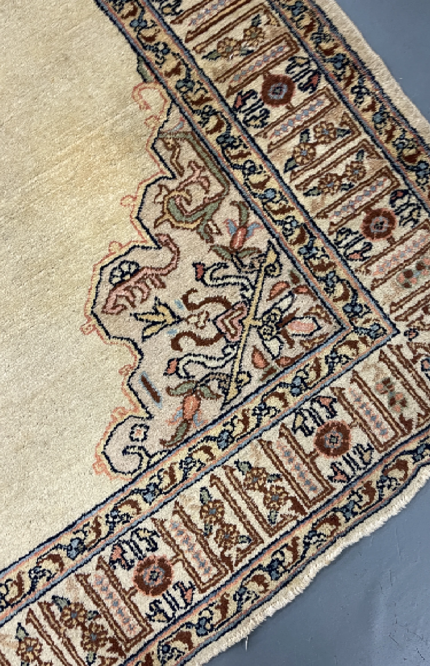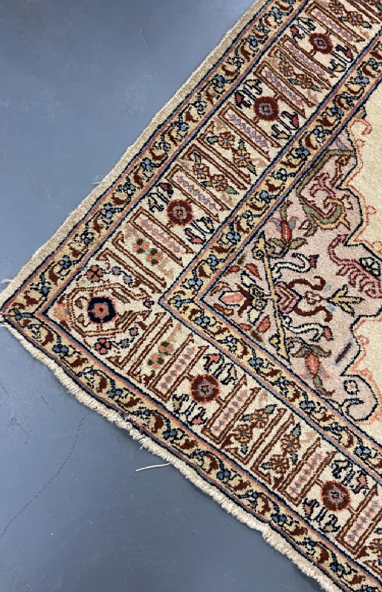 Regular vacuuming helps keep your rug clean. For spills, blot immediately with a dry cloth. Professional cleaning is recommended for deep cleaning, ideally every 12-18 months to maintain its beauty and longevity. We also offer professional rug cleaning and rug restoration services—if you’d like to know more, feel free to contact us for details. Please refer to our care guide for more maintenance tips.