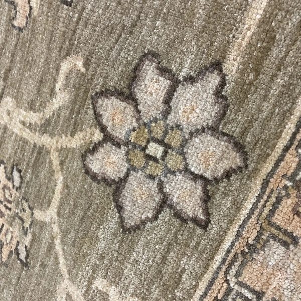 Elevate your living space with the Olive Green Living Room Rug, a stunning handmade wool carpet crafted with intricate floral Zeigler patterns. This elegant Central Asian rug blends tradition with contemporary charm, featuring a harmonious palette of olive green, beige, and gold. Soft underfoot and highly durable, this hand-knotted masterpiece transforms any space into a haven of sophistication and warmth.