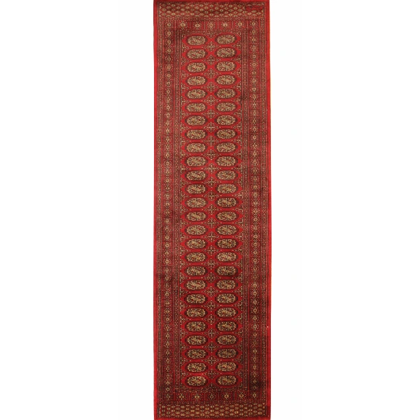 This Bukhara-style Turkmen runner originates from Pakistan, a country known for its exceptional rug-making heritage. Woven in the early 2000s, it reflects centuries-old Turkmen weaving traditions, passed down through generations. The vintage appeal of this rug, combined with its enduring craftsmanship, makes it a valuable collectible. Despite its age, it remains in excellent condition, embodying the strength and artistry of skilled Pakistani artisans.