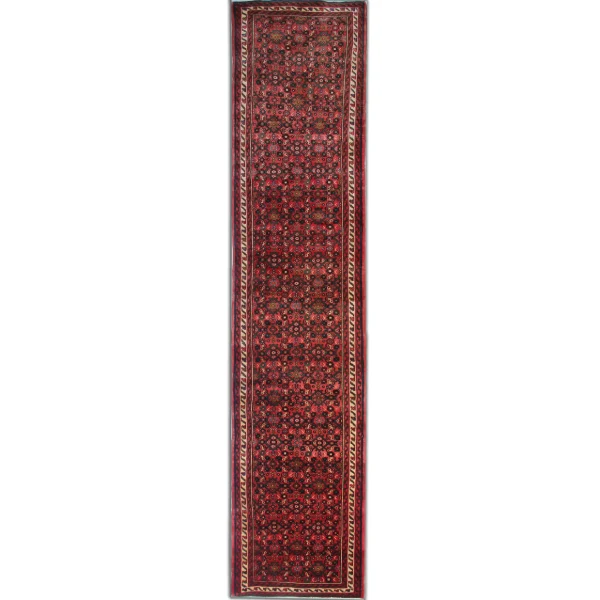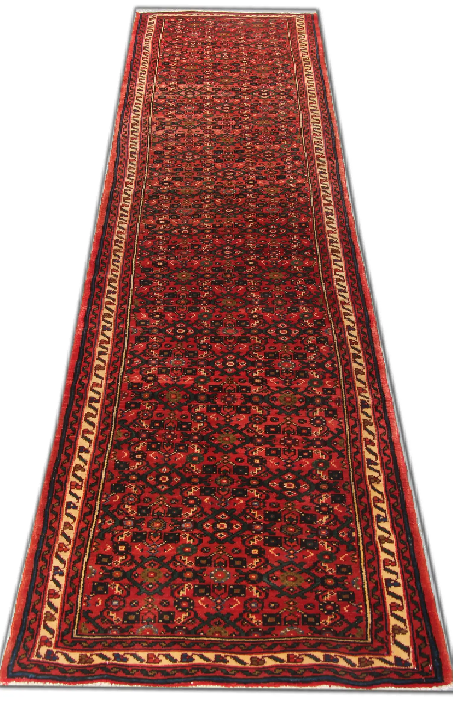 This long rectangular runner showcases a repeating traditional Persian motif, woven with meticulous precision. The dominant red base is beautifully contrasted with blue and brown detailing, enhancing the overall depth and warmth of the design. The intricate patterns create a harmonious flow, making it a statement piece for both classic and modern interiors. Ideal for staircases, hallways, and narrow spaces, this runner brings a touch of Persian heritage into your home.