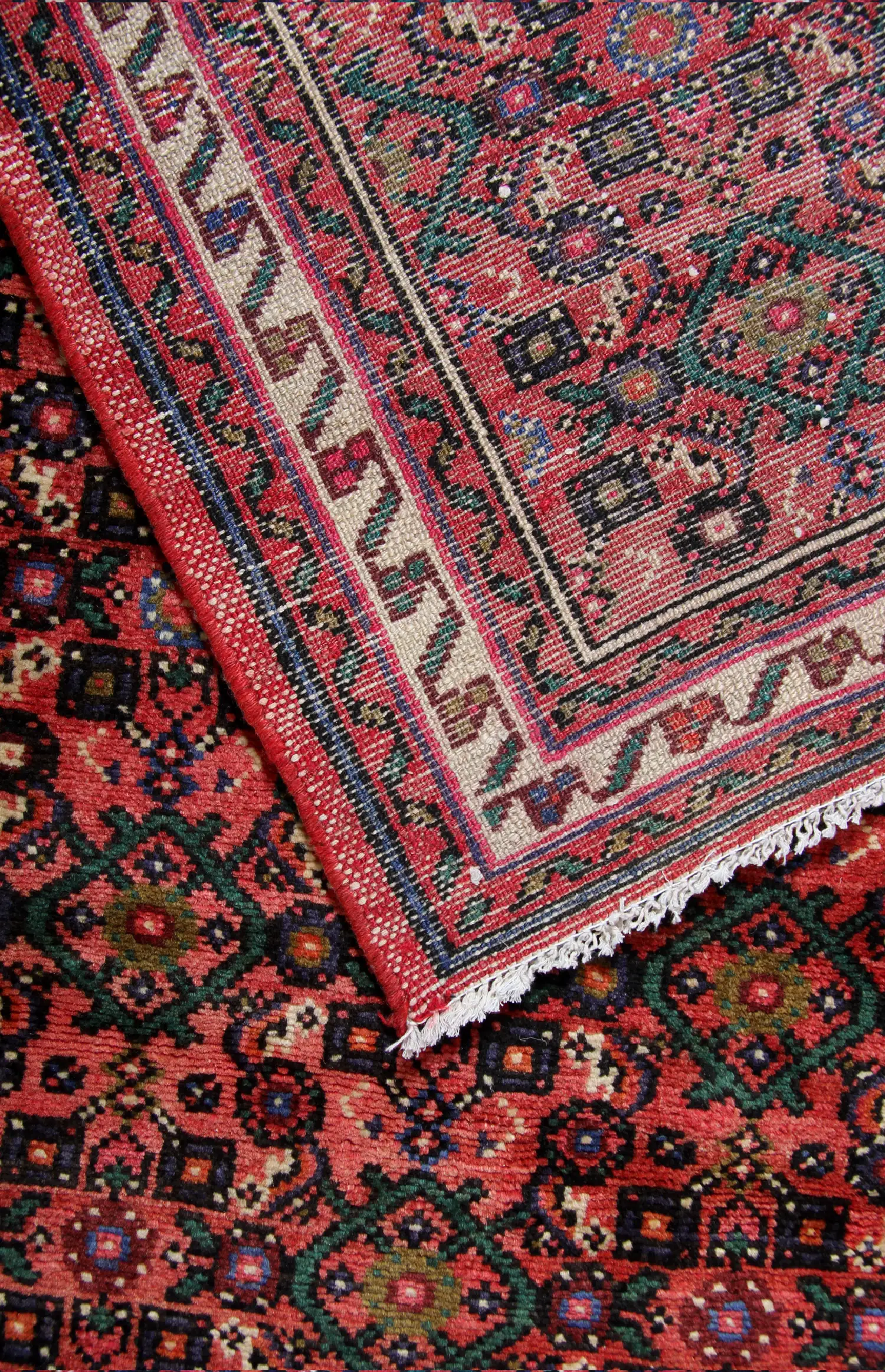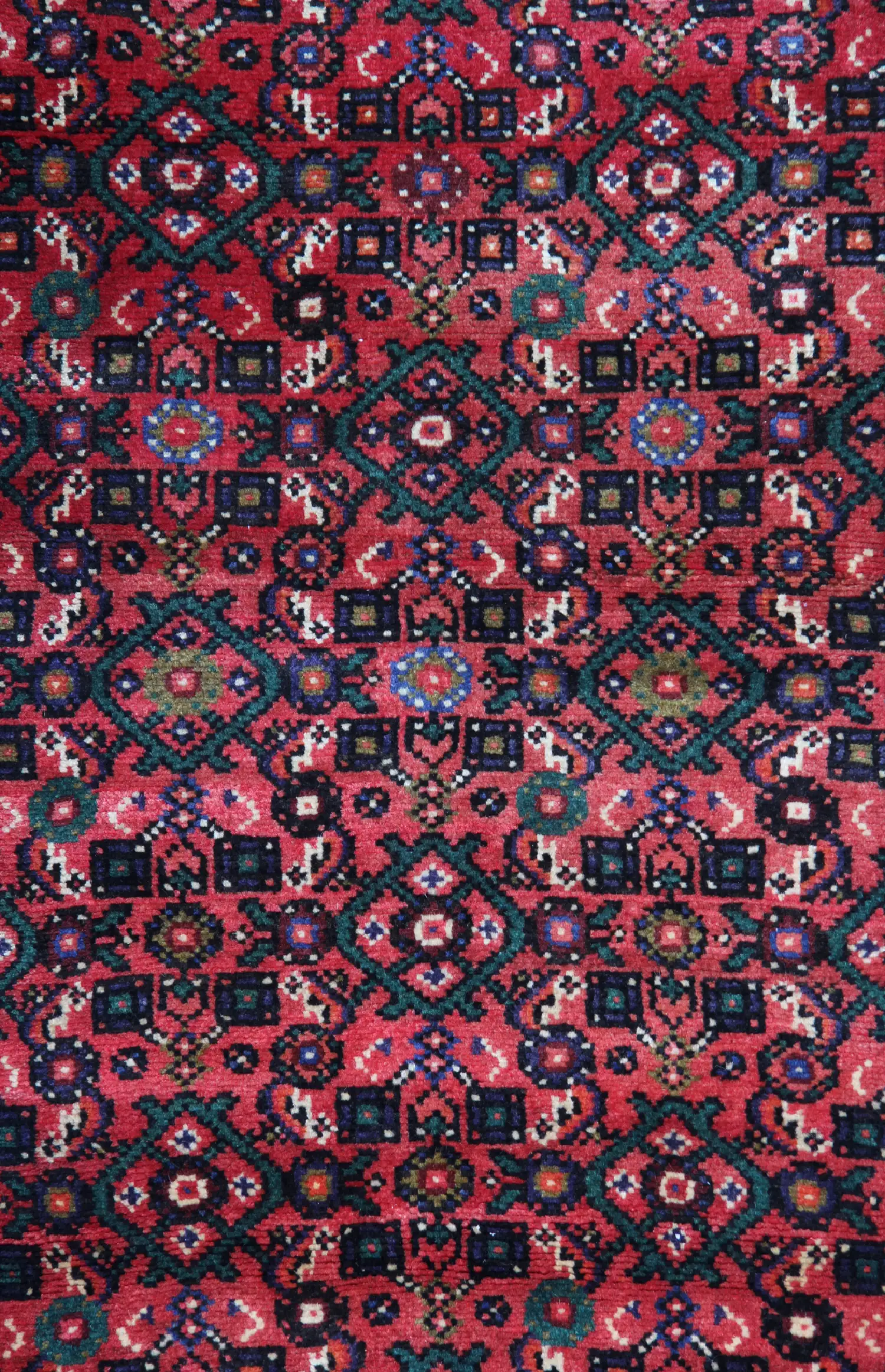 Hailing from the Hussein Abad region of Persia, this rug reflects the deep-rooted tradition of Iranian rug weaving, known for its durability and intricate designs. This over 70-year-old masterpiece is a testament to fine craftsmanship, ensuring its longevity and timeless appeal. Despite its vintage nature, it has retained its vibrant colors and exquisite patterns, making it a collector’s item and a functional decor piece.