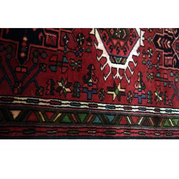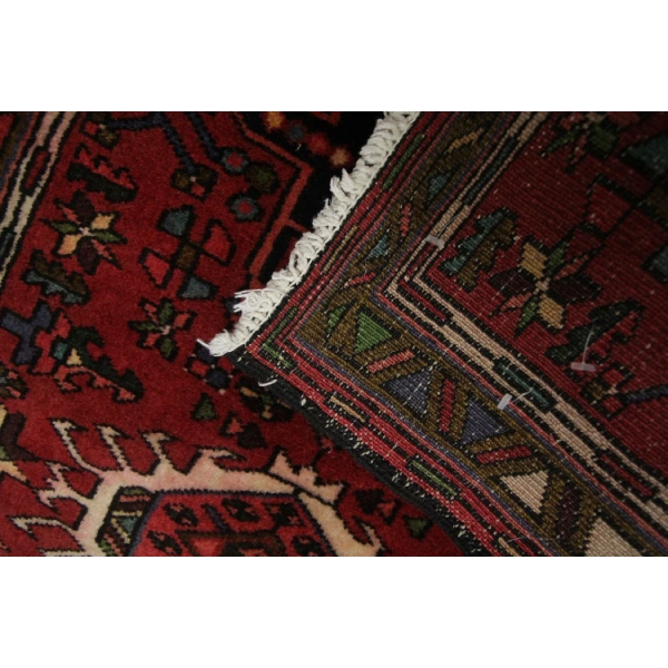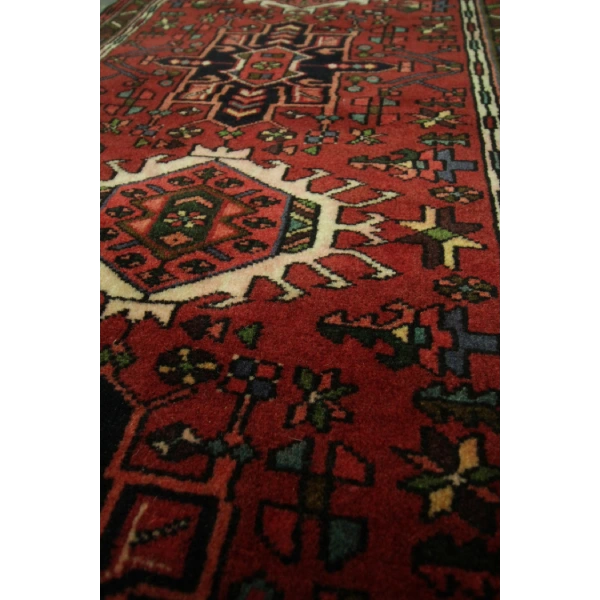 The Vintage Red Runner Rug is a hand-knotted Persian masterpiece from the 1960s, blending tradition with rustic elegance. Featuring bold geometric patterns and a symmetrical design, this rug is a testament to timeless craftsmanship. Handwoven from premium wool and cotton, its deep red and burgundy hues create a warm and inviting ambiance. Ideal for staircases, hallways, or narrow spaces, this rug adds both character and durability to any home.